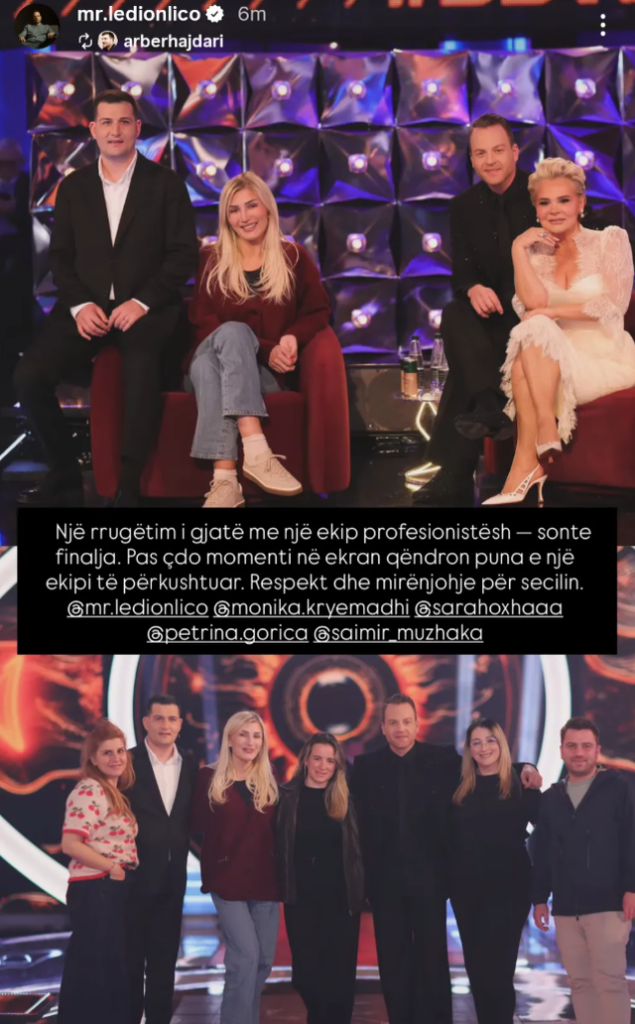 Për të treguar mirënjohjen e tij për këtë eksperiencë dhe bashkëpunim të gjatë, Arbri ka shkruar:.”Një rrugëtim i gjatë me një ekip profesionistësh — sonte finalja. Pas çdo momenti në ekran qëndron puna e një ekipi të përkushtuar. Respekt dhe mirënjohje për secilin.”
