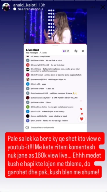 “Me këtë ritëm komentesh nuk janë as 160k view live… kush e hapi këtë lojën me t’bleme”, shkruan ai, duke lënë të kuptohet qartë se,