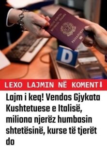 Për më shumë se 160 vjet, pasaporta italiane ishte një e drejtë e lindjes që kapërcente oqeanet. Por, një vendim i fundit i Gjykatës Kushtetuese në Romë sapo ka mbyllur “portën e hapur” për miliona pasardhës të emigrantëve italianë në diasporë, duke shënuar fundin e një epoke të gjatë të identitetit kombëtar të bazuar thjesht te gjaku.